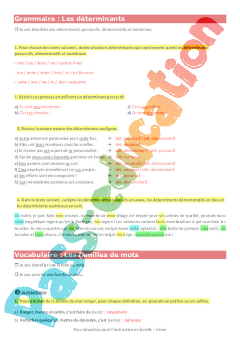 5. Grammaire- Les déterminants Semaine 15 IEF pdf