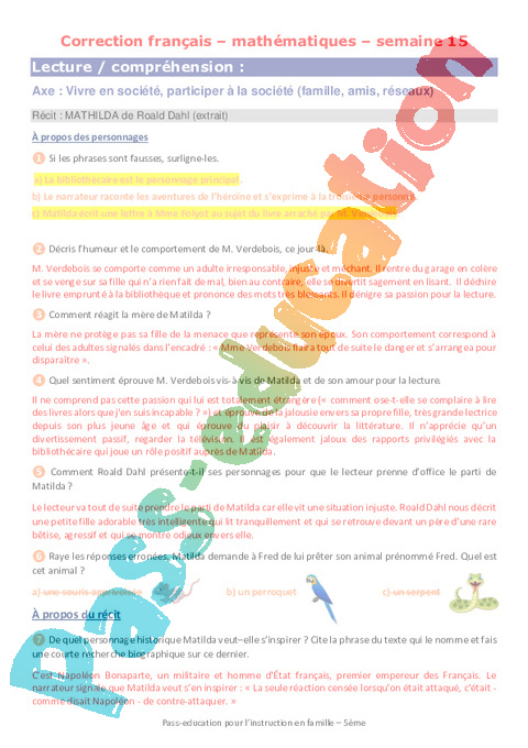 1 Matilda Roald Dahl Semaine 15 IEF pdf