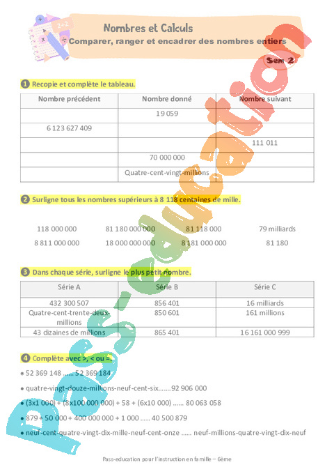 1 Révision 6eme Comparer ranger encadrer intercaler les nombres entiers pdf
