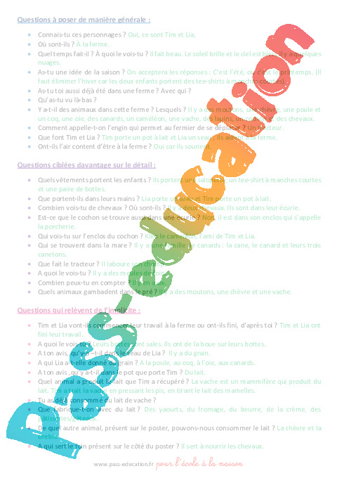 Langage : Vous pourrez abordez avec votre enfant le vocabulaire lié à la ferme ainsi qu’au respect des animaux.