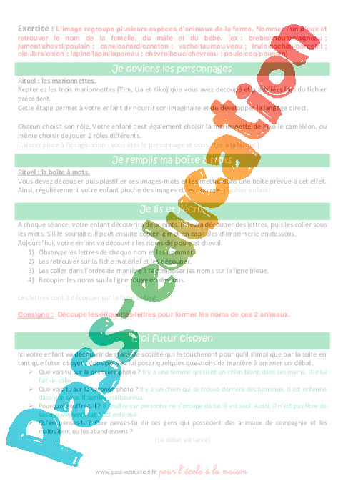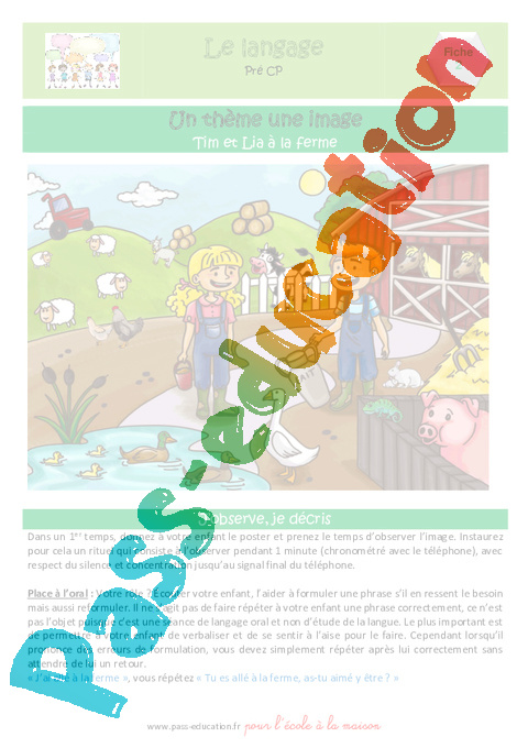 1b) Maternelle – Semaine 2 – Langage – A la ferme – Fiche parent pdf à consulter avant de commencer (sur écran)