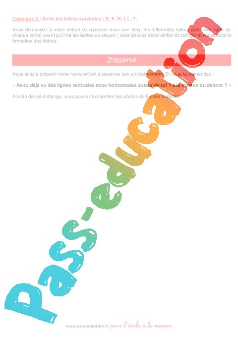 Graphisme: Votre enfant pourra apprendre à tracer des lignes horizontales et des lignes verticales puis à écrire les lettres en capitales d’imprimerie : I, F, E, H, T et L.