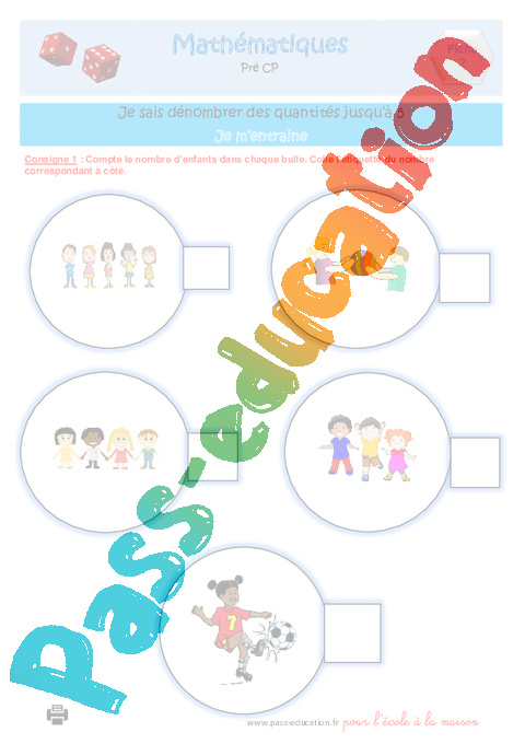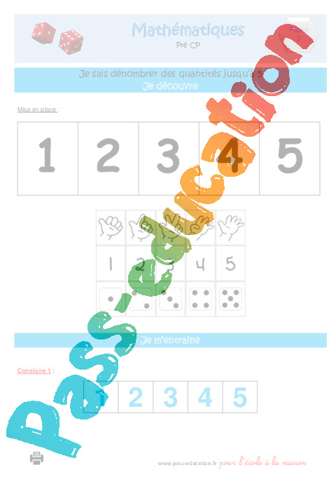 Mathématiques: Numération ; Dénombrer des quantités jusqu’à 5