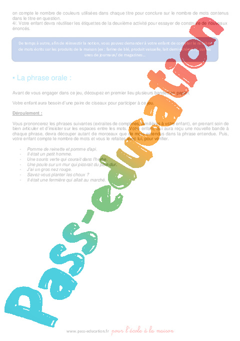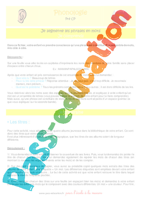Phonologie : Vous enfant pourra apprendre à segmenter des phrases en mots.