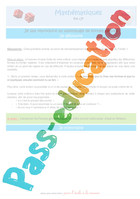 Mathématiques : Votre enfant apprendra à reproduire un assemblage de formes simples.