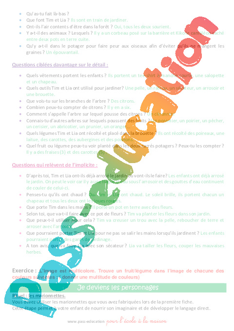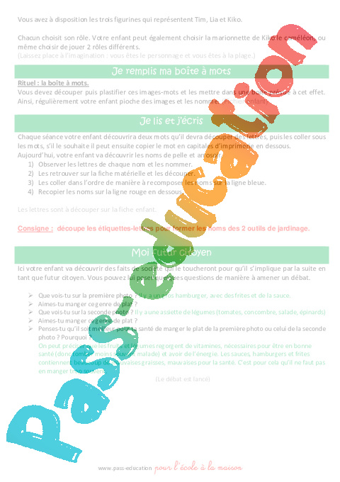 1b – Jardinage – Fiche parent : 3eme Maternelle – Semaine 4 pdf à consulter avant de commencer (sur écran)