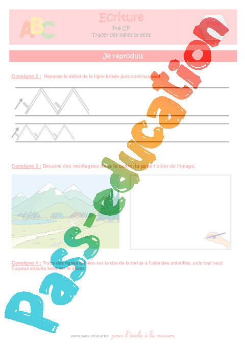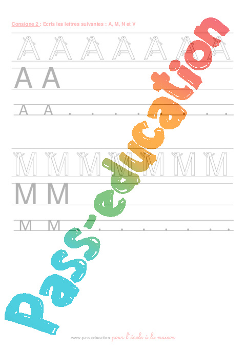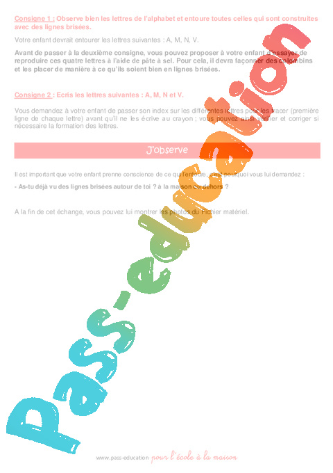 Graphisme / Ecriture : Votre enfant pourra apprendre à Tracer des lignes brisées et écrire les lettres suivantes en capitales d’imprimerie : A, M, N, V.