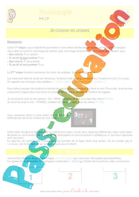 Phonologie: Votre apprendra s’exercera à compter les syllabes.