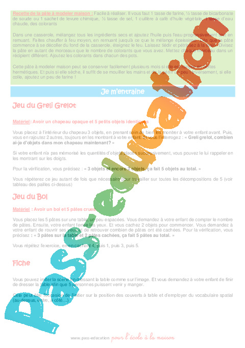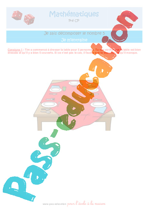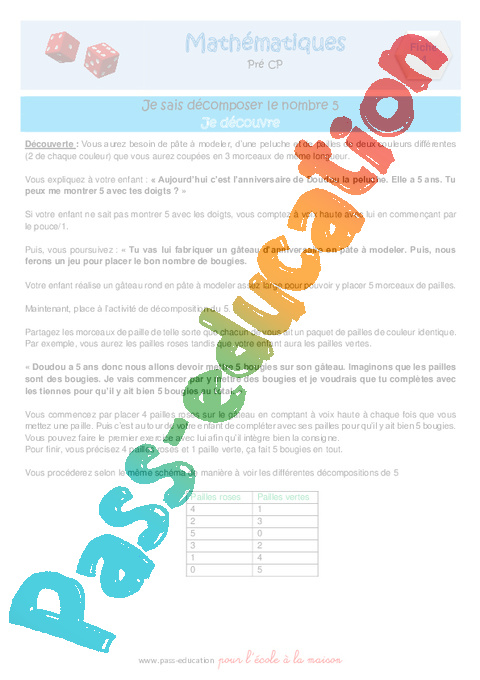 Mathématiques : Votre enfant apprendra à décomposer le nombre 5.