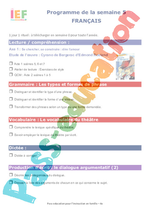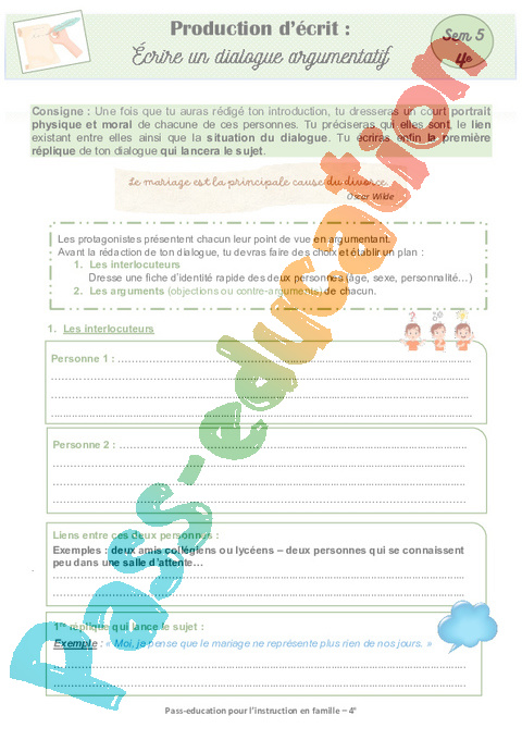 4 Expression écrite Dialogue Argumentatif 2 Semaine 5 IEF : 2eme Secondaire pdf