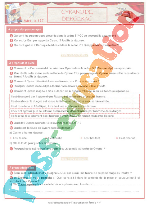 1 Questionnaire Cyrano Acte I Scène 5 à 7 pdf