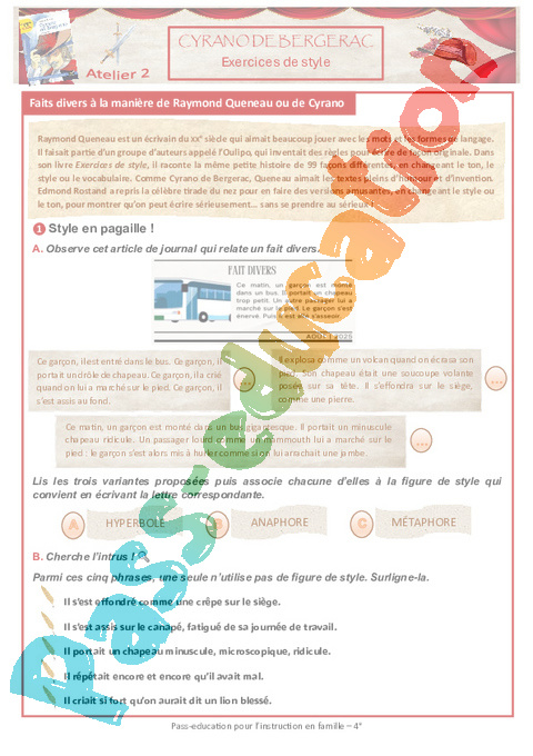 2 Cyrano Exercices de style Semaine 5 IEF : 2eme Secondaire pdf