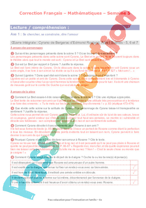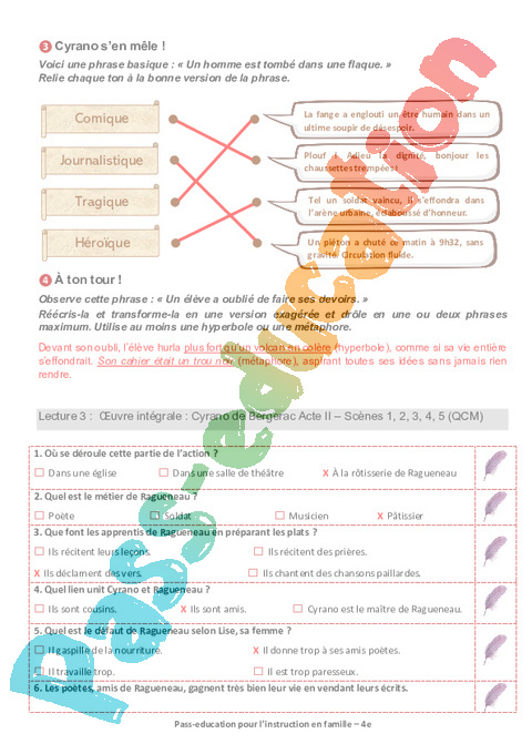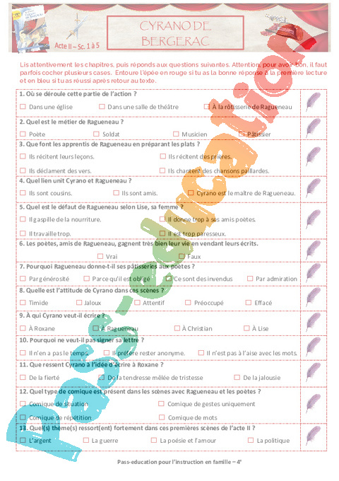 3 QCM Cyrano Acte II Scène de 1 à 5 Semaine 5 IEF : 2eme Secondaire pdf