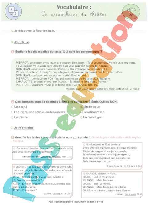 6 b Vocabulaire – Fleur lexicale Le vocabulaire du théâtre Semaine 5 IEF : 2eme Secondaire pdf