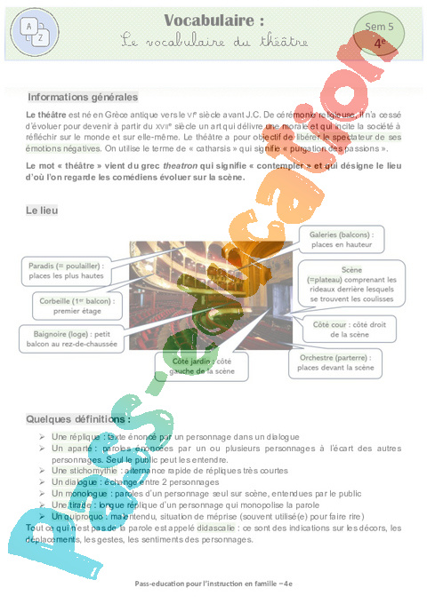 6 a Vocabulaire – Le vocabulaire du théâtre Semaine 5 IEF : 2eme Secondaire pdf