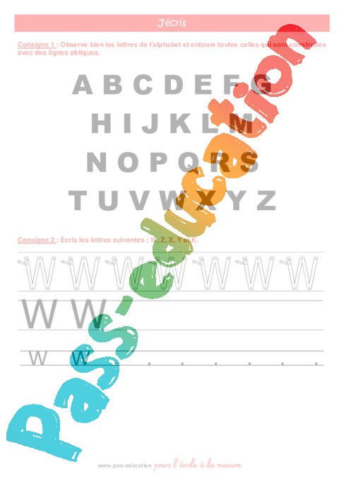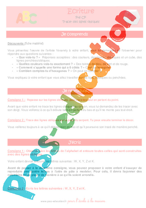 Graphisme / écriture : Tracer des lignes obliques et écrire les lettres suivantes en capitales d’imprimerie : K, W, X, Y, Z.