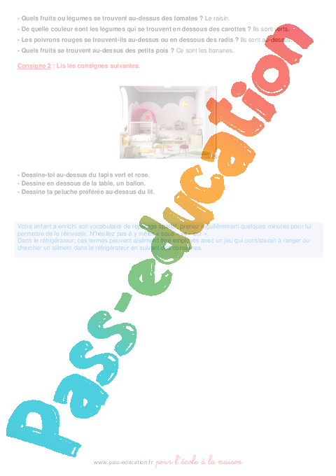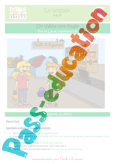 Langage : Vous pourrez abordez avec votre enfant le vocabulaire lié au supermarché ainsi qu’à la santé.