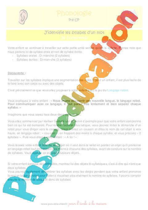 Phonologie : Votre enfant apprendra le bruit des lettres et à les combiner à l’oral ainsi qu’à prendre conscience des syllabes.