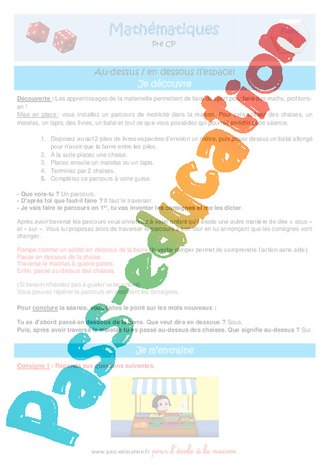 Mathématiques/espace : Votre enfant apprendra les notions”Au-dessus / en dessous” (l’espace).