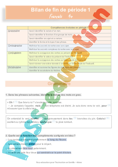 Bilan ief Période 1 français : 2eme Secondaire pdf