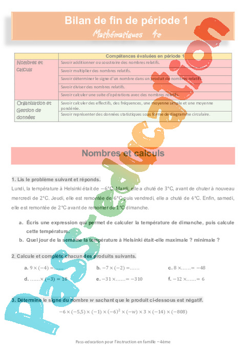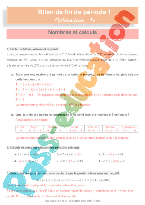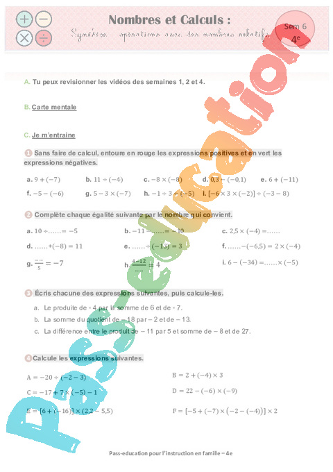 1 a Nombres et calculs – Synthèse opérations avec des nombres relatifs pdf