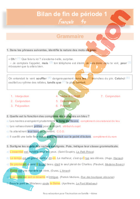 Correction Bilan ief Période 1 français : 2eme Secondaire pdf