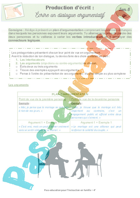 4 Production d’écrit – Ecrire un dialogue argumentatif pdf