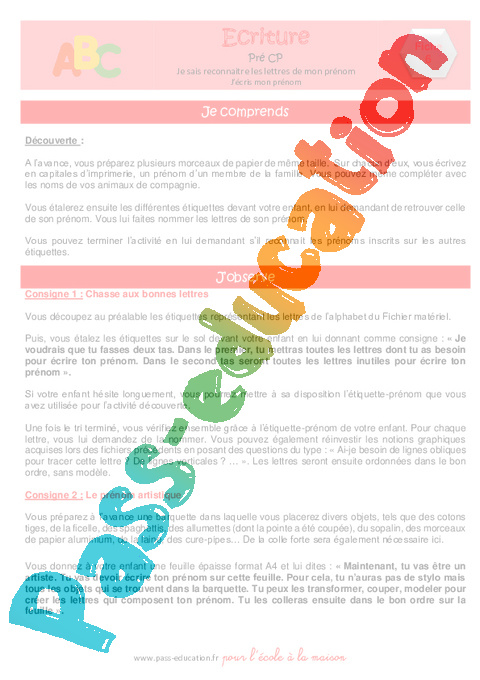 Graphisme / écriture : Votre enfant apprendra à reconnaitre les lettres de son prénom et à l’écrire en capitales d’imprimerie.