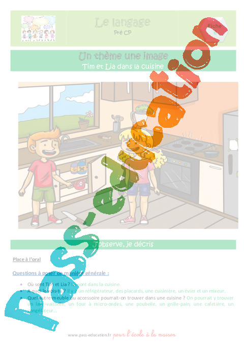 Langage : Vous pourrez aborder avec votre enfant le vocabulaire lié à la cuisine ainsi que les dangers domestiques.