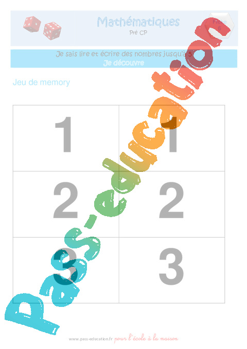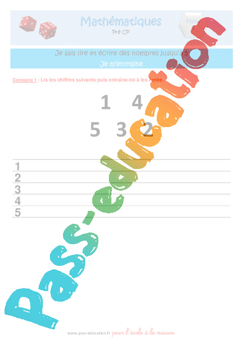 Mathématiques – numération : Lire et écrire les nombres jusqu’à 5.