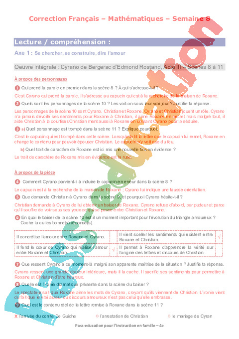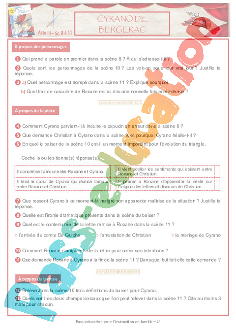 1 Questionnaire Cyrano Act III Sc 8 9 10 11 Semaine 8 IEF : 2eme Secondaire pdf