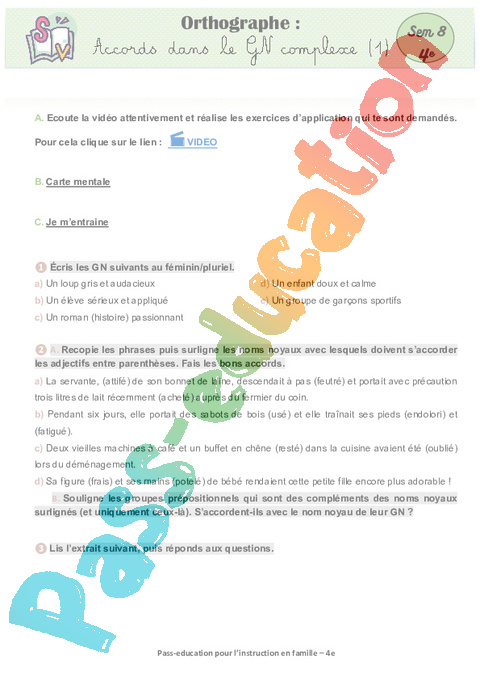 5 a Orthographe- Accords dans le GN complexe (1) Semaine 8 IEF : 2eme Secondaire pdf