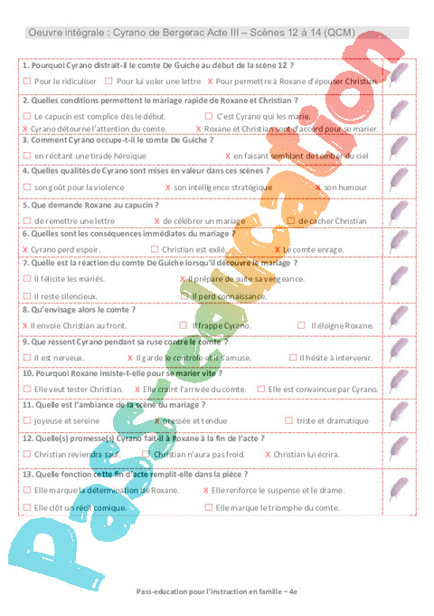 3 QCM Cyrano Acte III Sc 12 13 14 Semaine 8 IEF : 2eme Secondaire pdf