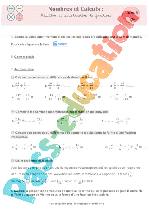 Nombres et Calculs : Addition et soustraction de fractions
