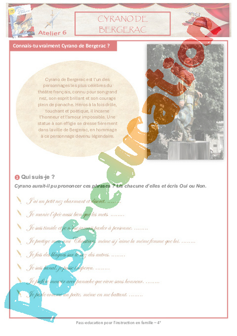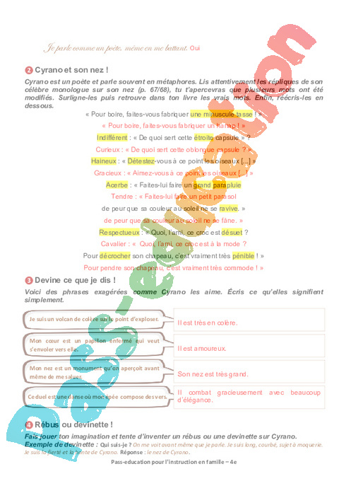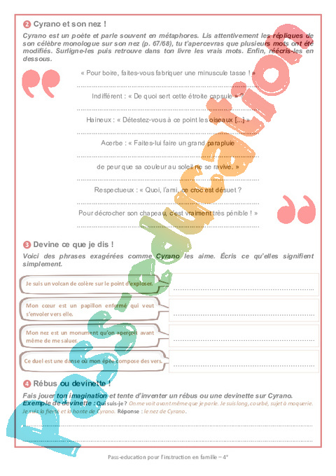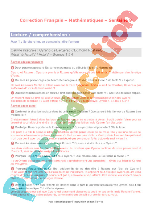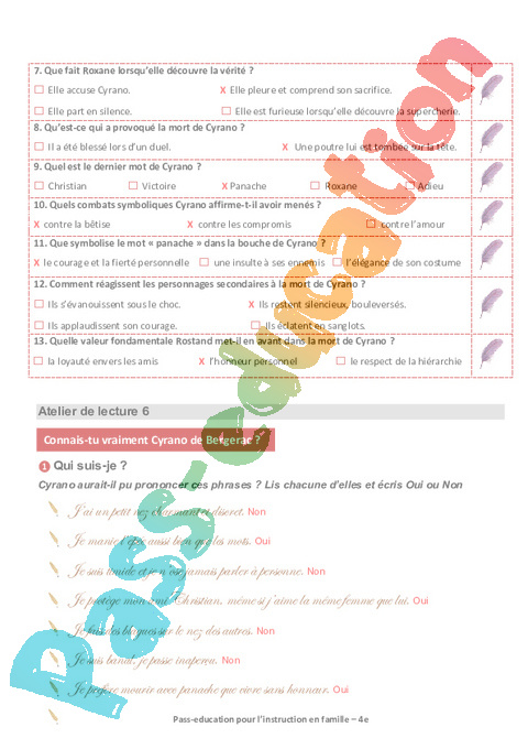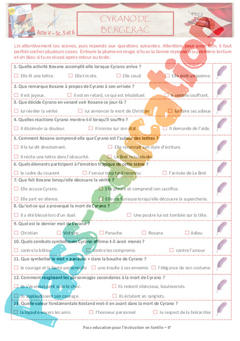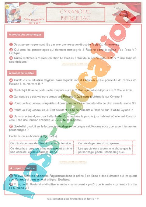 1 Questionnaire Cyrano Act IV Act V Sc 1 2 3 4 Semaine 9 IEF : 2eme Secondaire pdf