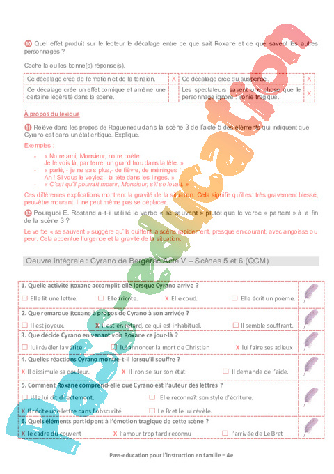 2 QCM Cyrano Acte V Sc 5 6 Semaine 9 IEF : 2eme Secondaire pdf