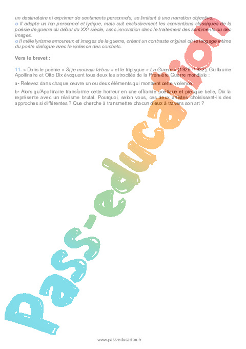 11. « Dans le poème « Si je mourais là-bas » et le triptyque « La Guerre » (1929 -1932), Guillaume Apollinaire et Otto Dix évoquent tous deux les atrocités de la Première Guerre mondiale :
