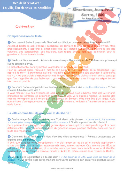 Correction Questionnaire Questionnaire : 2eme Secondaire Jean-Paul Sartre, 1949 pdf