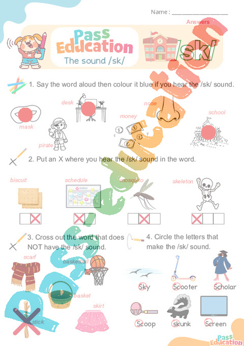 3. Cross out the word that does NOT have the /sk/ sound.