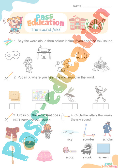 1. Colour the pictures that start with the /sk/ sound.