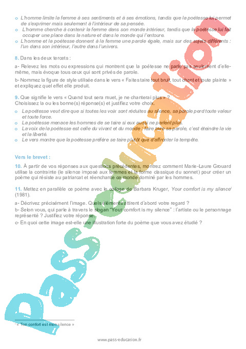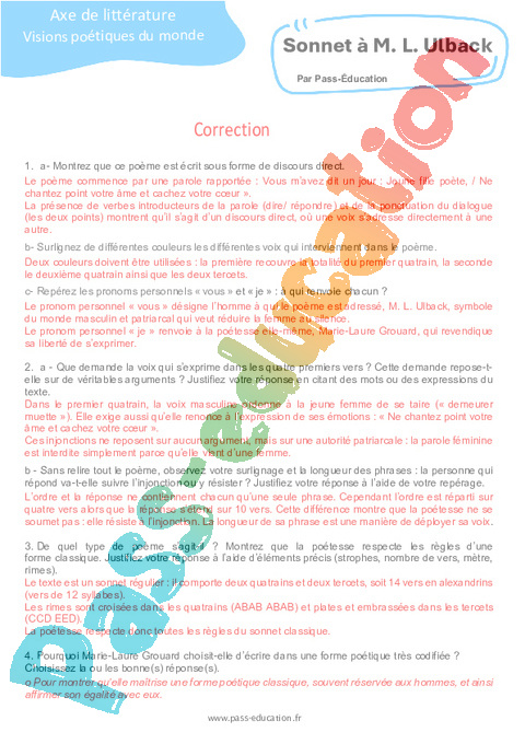 Correction Questionnaire Sonnet à M. L. Ulback : 3eme Secondaire pdf