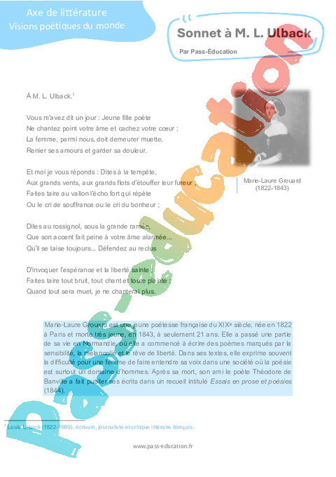 Littérature Sonnet à M. L. Ulback : 3eme Secondaire pdf