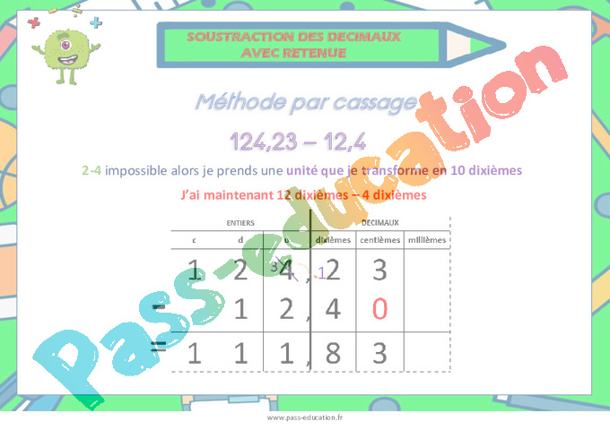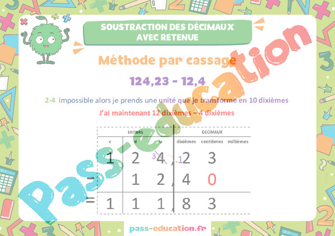 Soustraction des décimaux avec retenue – Affiche pdf