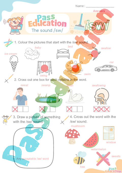 2. Put a cross when you hear the sound /sw/.