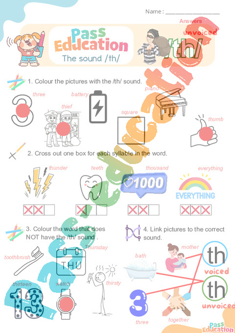 Carousel of Sounds : 3eme Maternelle 1ere, 2eme, 3eme, 4eme, 5eme Primaire – Vidéo interactive + Fiche sur le son : /th/ th (unvoiced).