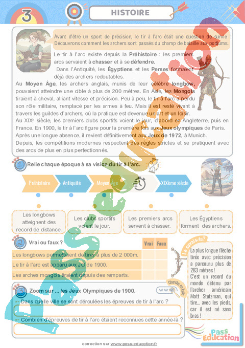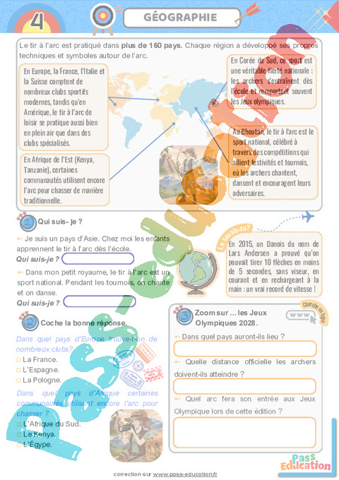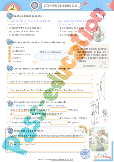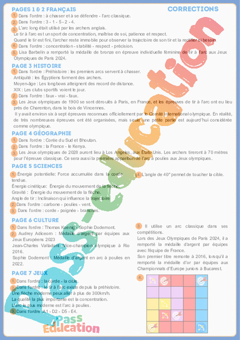Correction Tir à l’arc – Cahier de vacances : 4eme, 5eme, 6eme Primaire pdf