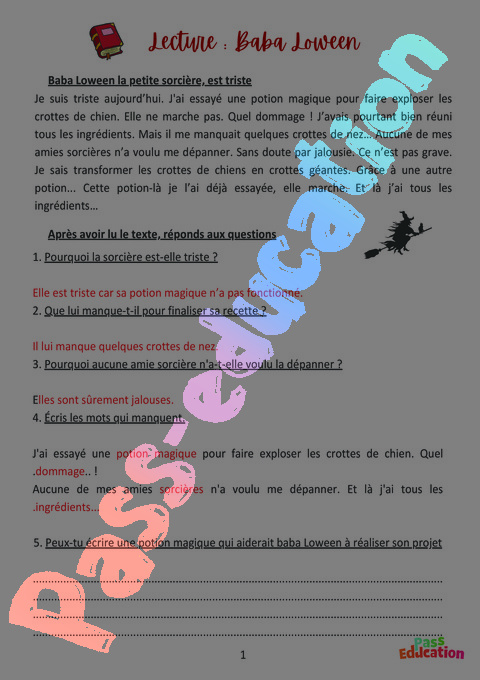 Je suis triste aujourd’hui. J’ai essayé une potion magique pour faire exploser les crottes de chien. Elle ne marche pas. Quel dommage ! J’avais pourtant bien réuni tous les ingrédients. Mais il me manquait quelques crottes de nez… Aucune de mes amies sorcières n’a voulu me dépanner. Sans doute par jalousie. Ce n’est pas grave. Je sais transformer les crottes de chiens en crottes géantes. Grâce à une autre potion… Cette potion-là je l’ai déjà essayée, elle marche. Et là j’ai tous les ingrédients…