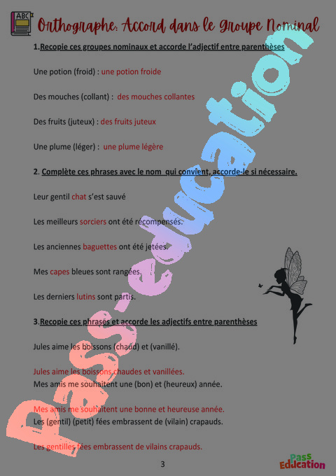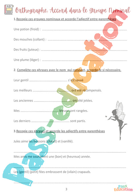 Recopie ces groupes nominaux et accorde l’adjectif entre parenthèses