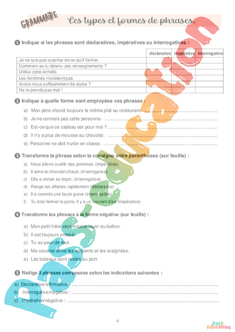 Indique si les phrases sont déclaratives, impératives ou interrogatives :