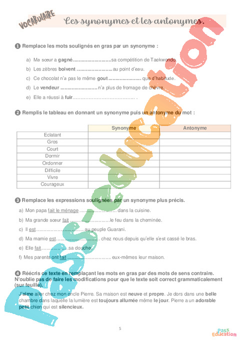 Remplis le tableau en donnant un synonyme puis un antonyme du mot :